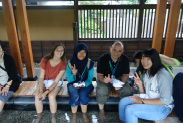 その後、飯坂町の飯坂学習センターに移動し、これから食べる県産のキャベツやトウモロコシなど野菜を使った放射性物質検査を見学しました。安全への取り組みを理解した上で、JA福島五連から協賛された検査済みの野菜や福島牛でバーベキューを楽しみ、福島の食の魅力を味わいました。安斎果樹園では桃狩りを体験しました。もぎたてとあって参加者は果汁たっぷりの桃にかじりつき大喜びでした。県産農産物を堪能しました。旧堀切邸では、桃のピューレ作りに挑戦。さらに、飯坂小唄に合わせて流し踊りを体験しました。